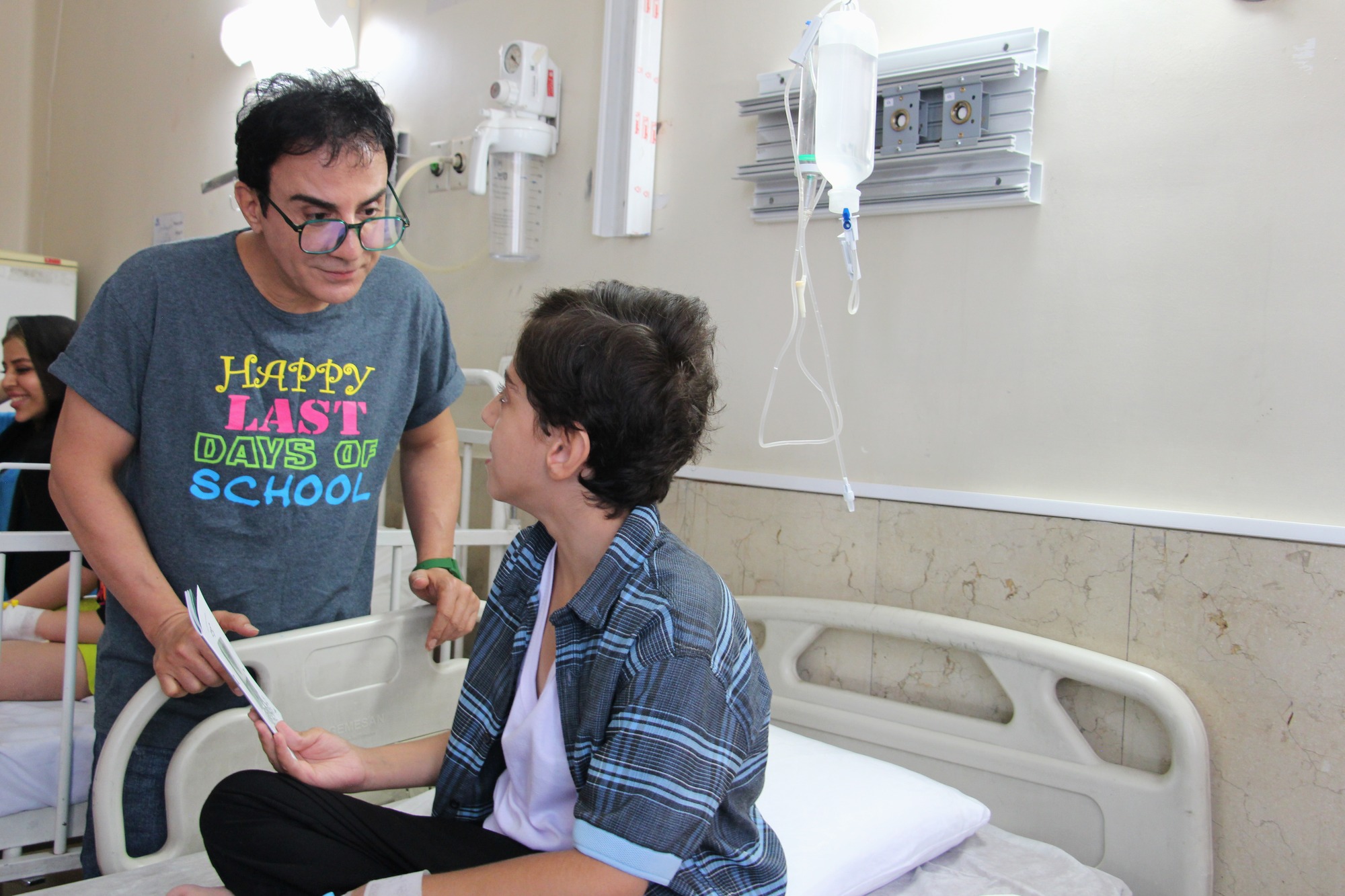 در یک دیدار صمیمی و پر از شور و نشاط، داریوش فرضیایی (عموپورنگ) با حضور در بخش‌های مختلف بیمارستان، از کودکان بستری عیادت کرد و با اهدای هدایا و گفت‌وگو با آن‌ها لحظاتی شاد و پرامید برای بیماران رقم زد. این حضور که با استقبال گرم کودکان و خانواده‌هایشان همراه بود، نقش مؤثری در تقویت روحیه بیماران ایفا کرد؛ چرا که ایجاد نشاط و انگیزه در بیماران، به‌ویژه کودکان، عاملی مهم در تسریع روند بهبودی آنان محسوب می‌شود.