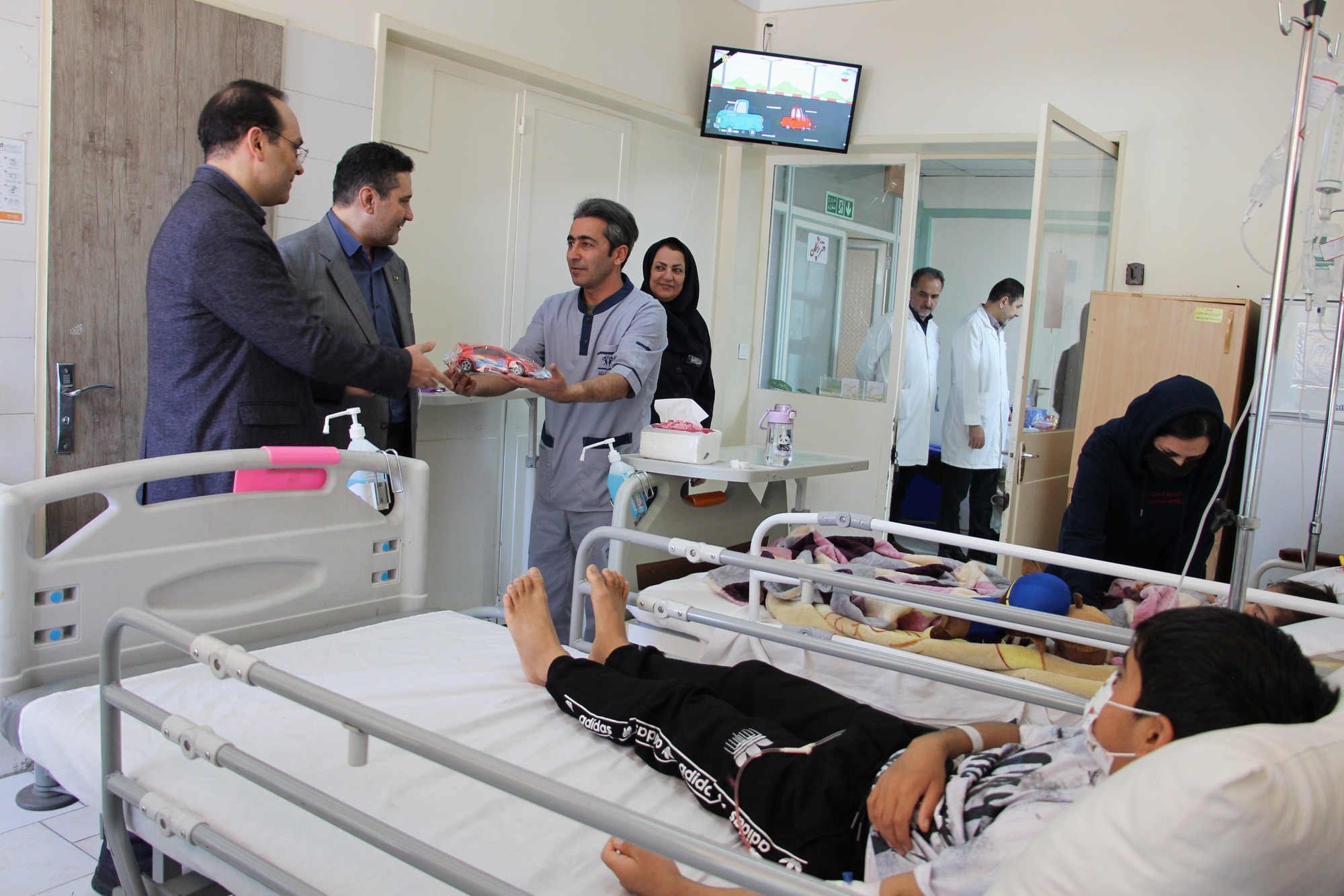 دکتر روح اله شیرزادی، رئیس بیمارستان مرکز طبی کودکان، به همراه جمعی از مسئولان بیمارستان، با حضور در جمع کودکان بستری بخشهای خون و جراحی، عید نوروز را به آنان تبریک گفته و با اهدای عیدانه، روحیهای مضاعف به آنان بخشیدند.